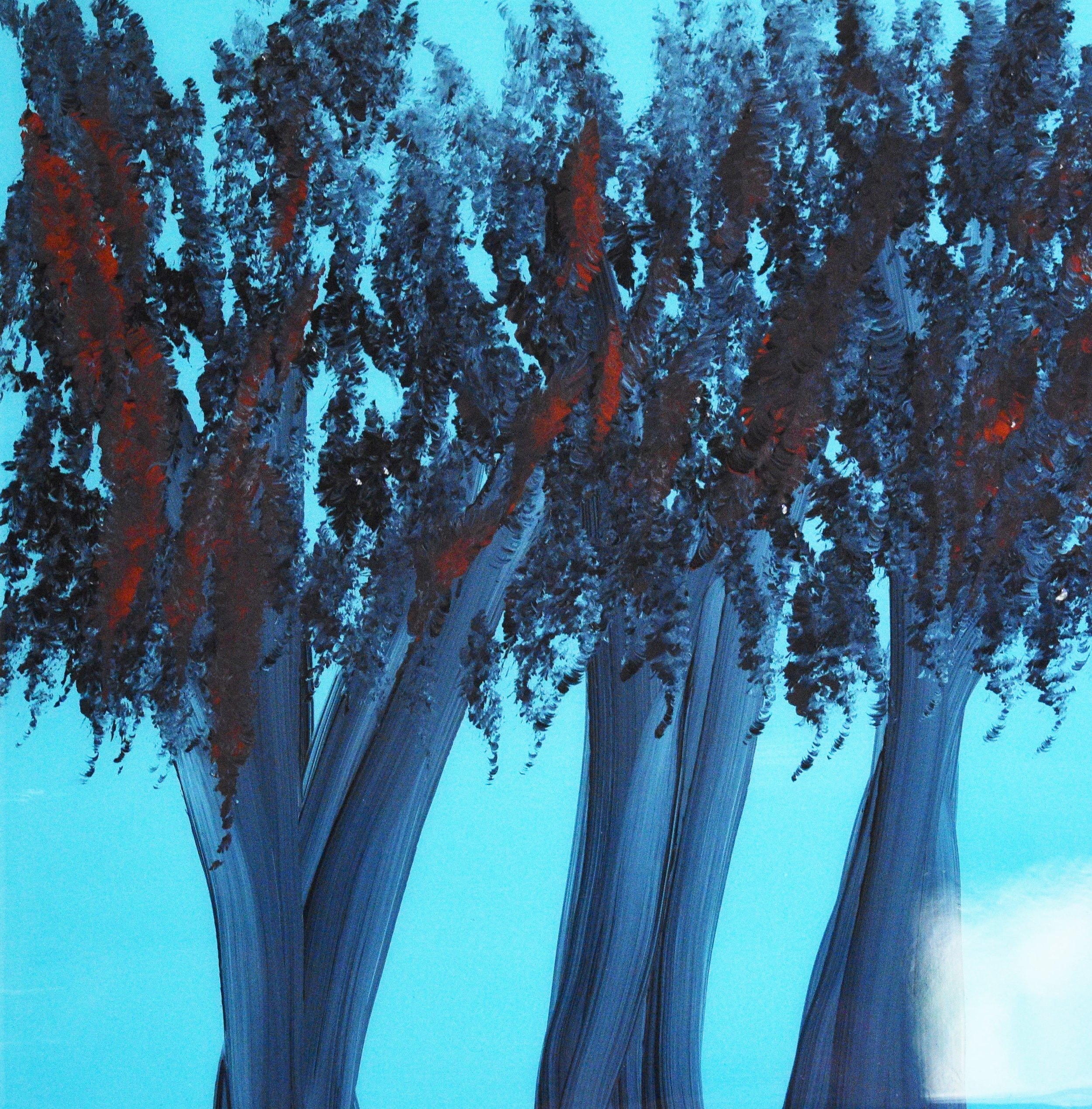 There is an intuitive process in what I do as an artist. I go into the studio and choose my materials and allow the art to be expressed through me. I interpret what I have done afterwards. I often paint words in my art. I write poetry. I add pieces of poetry, or sometimes a whole stanza to an art piece. A common theme in the art that I do is overcoming and breaking through. Trees are common theme in my work. For me, they stand for strength, connection, and giving life to a new path. There is something fascinating about trees. So, I keep painting them.